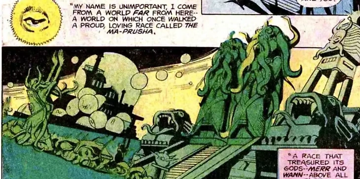 В мультсериале «Бэтмен: Отважный и смелый» Бэтмен и Человек-ястреб столкнулись с расой инопланетян, известных как Ма-Пруша. Существа с внешностью, вдохновленной Ктулху, завладели Женщиной-ястребом, чтобы переместить на Землю древние статуи со своей планеты.