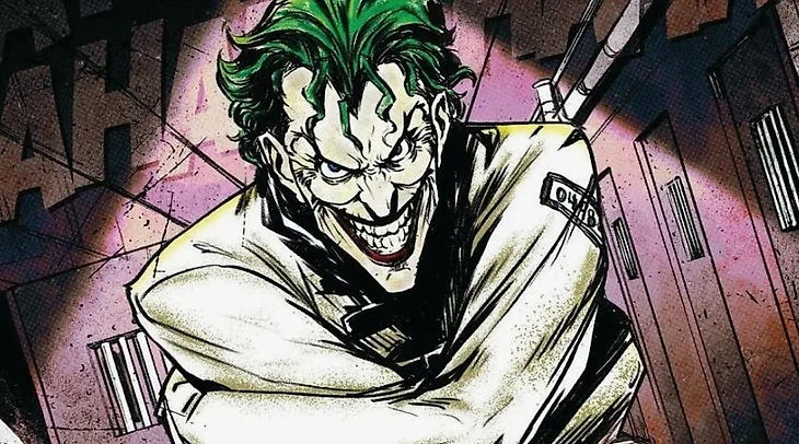 Да, DC все еще держится за историю происхождения от Алана Мура про неудачливого комика. В какой-то момент бедолага упал в чан с кислотой, но... Эта версия полностью разрушена в 2020-м комиксами Джеффа Джонса.