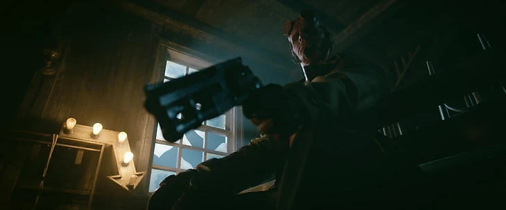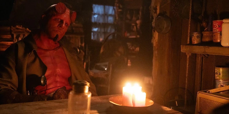 Первые секунды вселяют надежду на хорошее кино: приятно выставленные кадры, чуткая работа со светом, хорошая презентация Хеллбоя, брутально прикуривающего самокрутку. Но потом полудемон открывает рот.