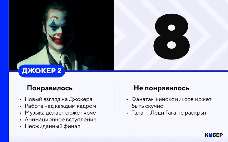 «Джокер: Безумие на двоих» с Хоакином Фениксом и Леди Гагой после премьеры собирает все больше разгромных отзывов критиков и зрителей. Фильм стартовал лишь с $7 млн сборов в США, что почти на 50% меньше показателей первой части. На Rotten Tomatoes оценка упала с 60 до 38%. Показательная картина, не так ли?