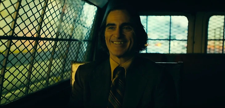 Процесс суда и подготовка к нему кинематографически прекрасны. Зритель глубоко погружается внутрь личности Джокера, исследуя его ментальные проблемы. Мы узнаем, что в действительности происходило с Артуром и почему он стал таким. От стыда герой мысленно убивает всех в зале, но в реальности улыбается и выпускает из-под крышки сущность Джокера, которую так пытался не вспоминать Артур. Теперь не он жертва, а вы!