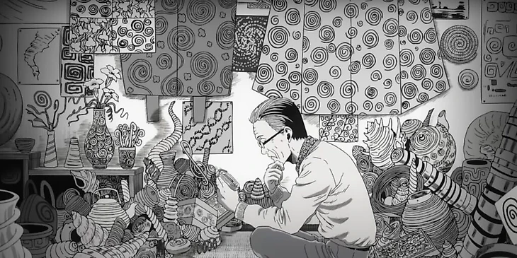 Сюжет аниме рассказывает о наблюдательном молодом человеке по имени Сюити Сайто, который опровергает теорию о монстрах, терроризирующих его родной город. В ходе своего расследования он обнаруживает, что все ужасы в городе связаны с мистическим проклятием, исходящим от спиральных узоров удзумаки. Эти спирали не просто символы — они безжалостно затягивают людей в безумие и превращают их в заложников страшного рока.