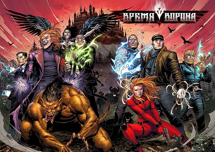 «Время ворона» – это экранизация российских комиксов, выпускавшихся издательством Bubble Comics с 2015 по 2016 год. Она объединяет в себе серии комиксов: «Майор Гром», «Красная Фурия», «Инок» и «Бесобой», «Экслибриум» и «Метеор».