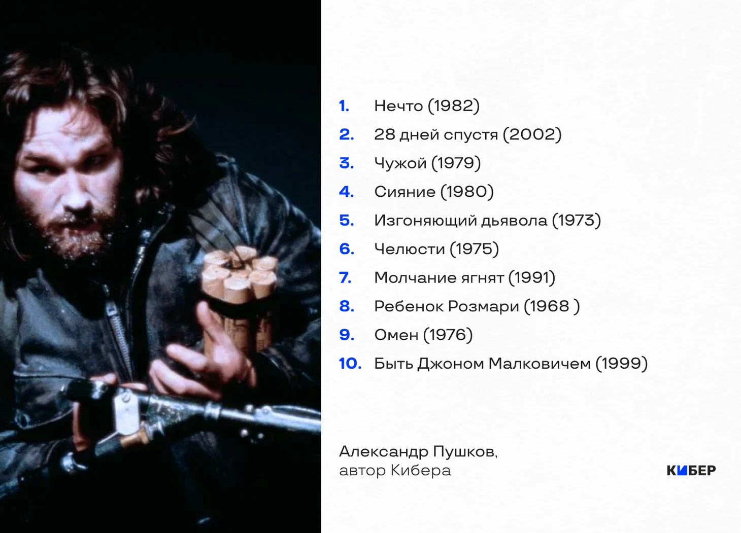 В моем списке в основном сай-фай и классика большого кино. Единственное исключение – «Быть Джоном Малковичем». Он даже формально не хоррор, но я его жутко боюсь, мне от него физически плохо.