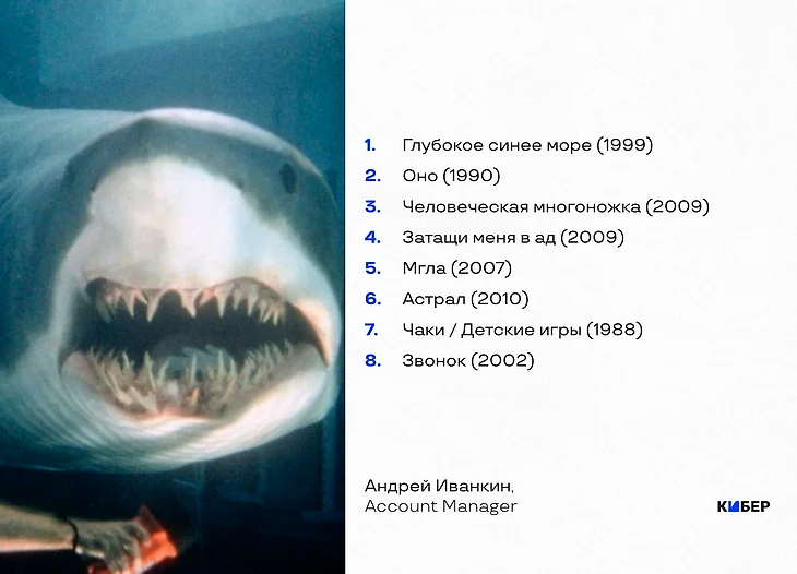 Но зная, что большинство коллег – хоррор-задроты, я решил разбавить их топы фильмами, которые только формально относятся к жанру. Ну кто-то же должен напомнить, что гигантская аниматронная акула – это действительно страшно!