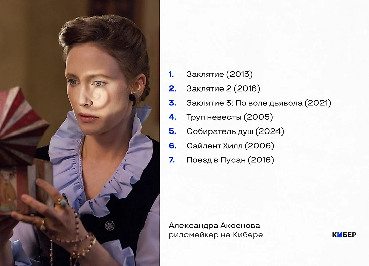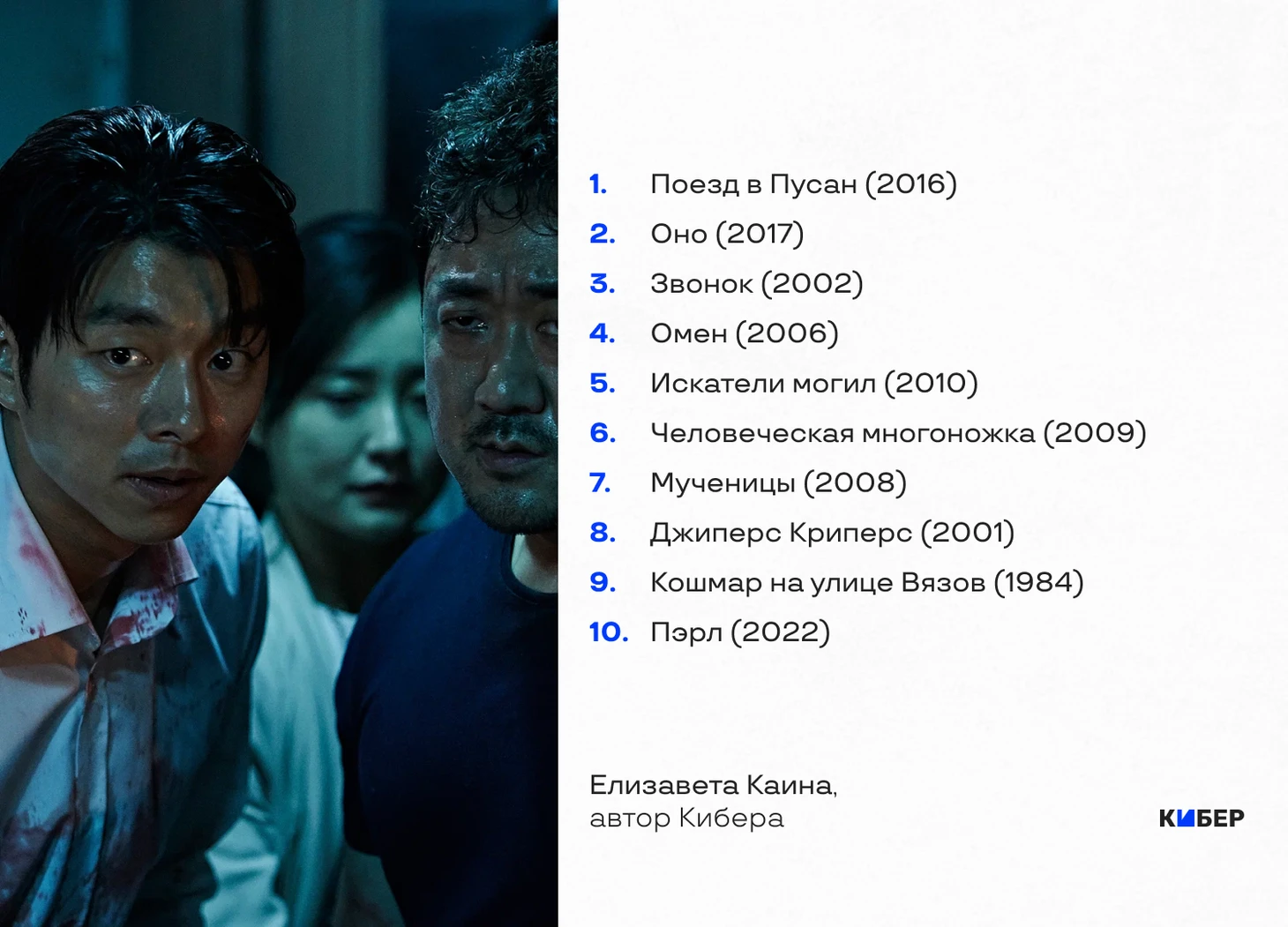 Я тоже не фанатка жанра ужасов, нежной любовью люблю «Заклятие» из-за актрисы Веры Фармиги. «Труп невесты» просто атмосферный, «Собиратель душ» – это из свежего. «Сайлент Хилл» напоминает мне о детстве, а «Поезд в Пусан» нравится темой зомбиков.