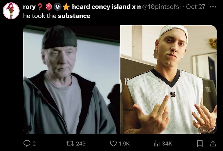 Рецензии на фильм пишутся, а мемы делаются – это ли не признак настоящей любви к «Субстанции»?