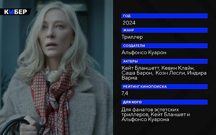 В сегодняшней подборке – недооцененные проекты уходящего 2024 года: сериал Альфонсо Куарона с Кейт Бланшетт, криминальный триллер про киллера с провалами в памяти, шоу про маньячку-скромницу, слезливая история дружбы робота с дикой природой, лучшая семейная комедия года и другие скрытые бриллианты.