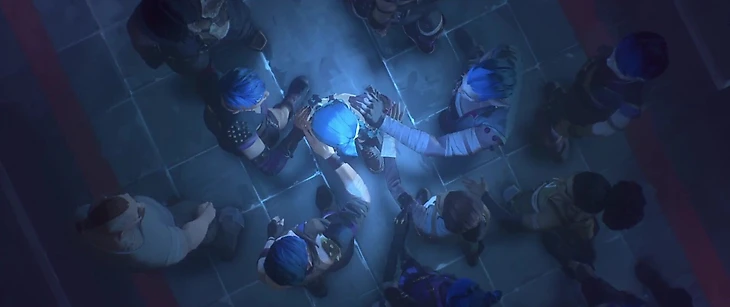 Джинкс – необузданная хищница, способная проникнуть в любое место и кого угодно покарать. Разве можно показать эту девицу несчастной жертвой? Да, если новый отряд Вай и Кейтлин идет на охоту. Газовые бомбы, пугающие маски, холодность и профессионализм в каждом движении. Когда они обыскивают логово, за Джинкс становится страшно. В ее глазах читается отчаяние, рефлексы толкают к побегу.