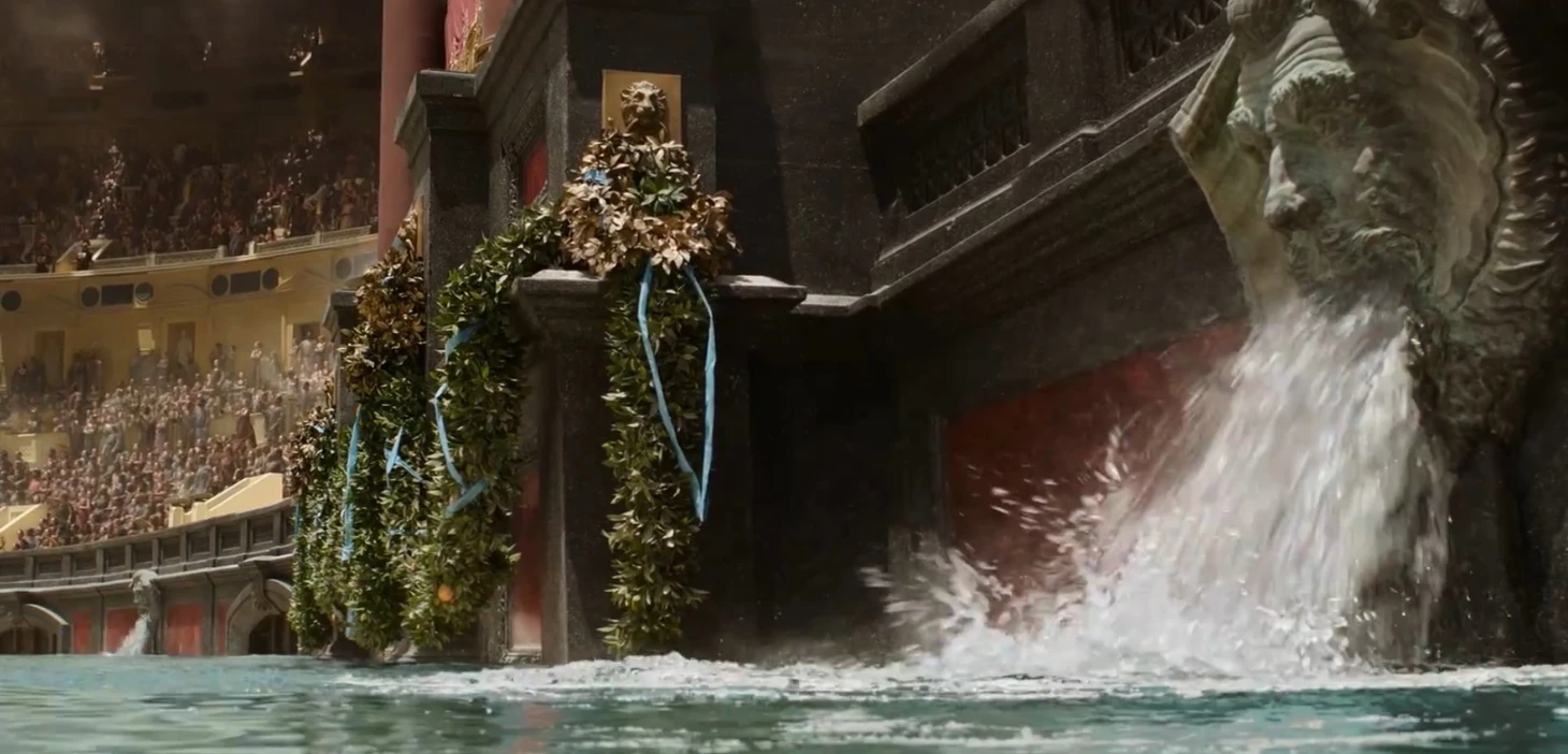 В другой сцене Колизей наполнен водой, словно гигантский бассейн. Cтранно даже не это, а то, что там плавают акулы, которые поедают воинов, упавших с корабля. По словам Коулман, в то время «римляне даже не могли знать, что такое акула».