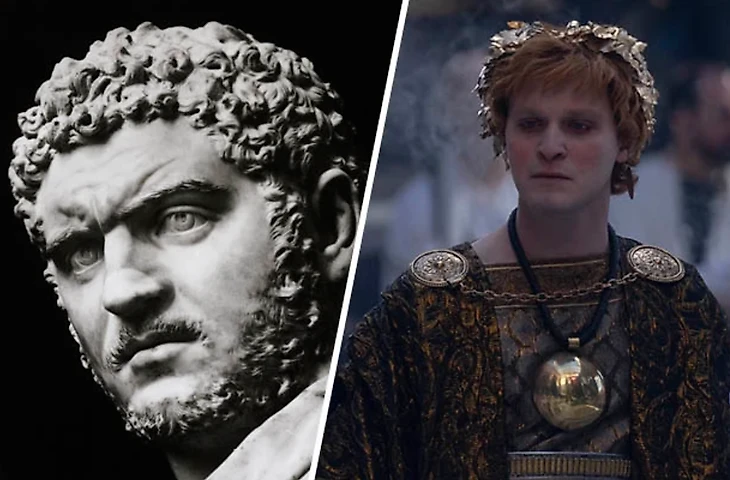 Два императора, Каракалла и Гета, правили вместе всего несколько месяцев. Каракалла представлен в фильме болезненным подростком, хотя в действительности был крепким мужчиной и жестоким тираном. Неправда и то, что его сольное правление было очень коротким: шесть лет – это немало. Все это время сенат боялся и ненавидел Каракаллу.