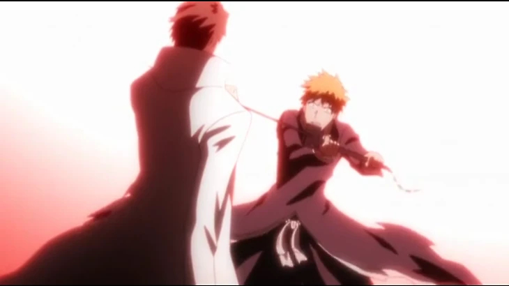 Ичиго, крича, спрашивает Айзена, что он имеет в виду, утверждая, что каждая из его битв была частью заранее продуманного плана. Айзен спокойно отвечает, чтобы тот не повышал голос, и объясняет, что с момента, когда он понял, что Ичиго — именно тот, кого он искал, он намеренно способствовал его развитию. Айзен указывает на странности, которые Ичиго должен был заметить, начиная с его превращения в синигами.
