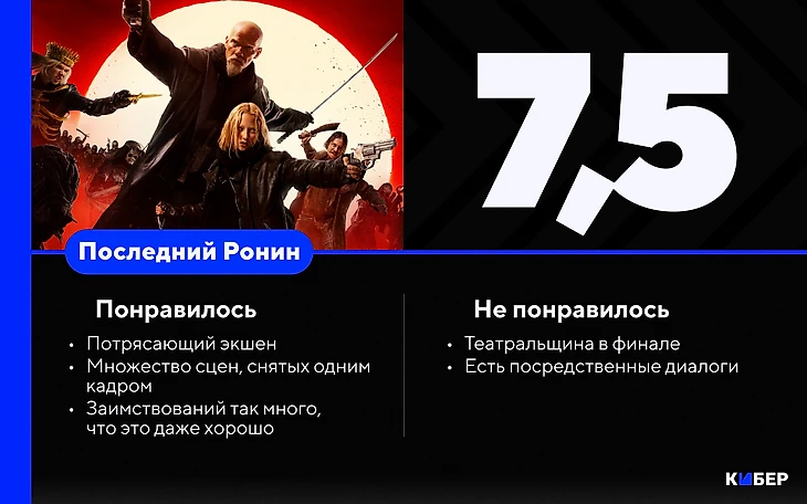 Пожалуй, ни один фильм не вызывал во мне столько противоречивых чувств. При просмотре «Последнего ронина» я неоднократно сгорал со стыда, но затем завороженно смотрел в экран и забывал дышать. Потому что в лучшие моменты это грандиозный шедевр. А таких моментов много!