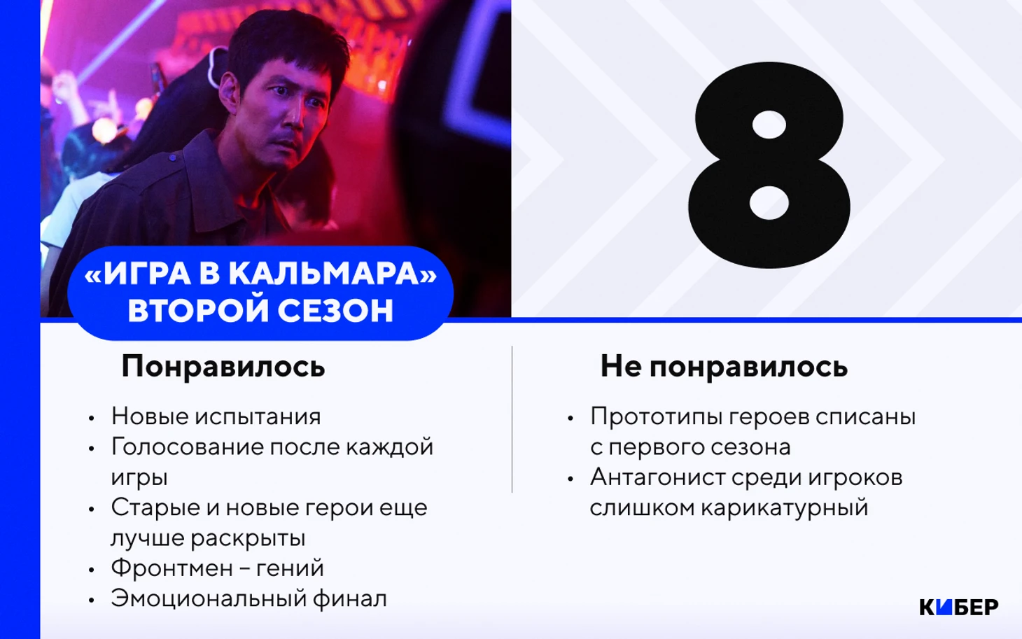 Перед нами не полноценный сезон, а, скорее, «Второй сезон. Часть 1». Это незавершенная история без четкой концовки. Поэтому и оценить ее однозначно сложно. Не покидает ощущение, что Netflix доит «Игру в кальмара» до последней капли – отсюда ощущение затянутости. Но неспешное и детальное повествование – дело вкуса, а вот с другими недостатками сложнее: