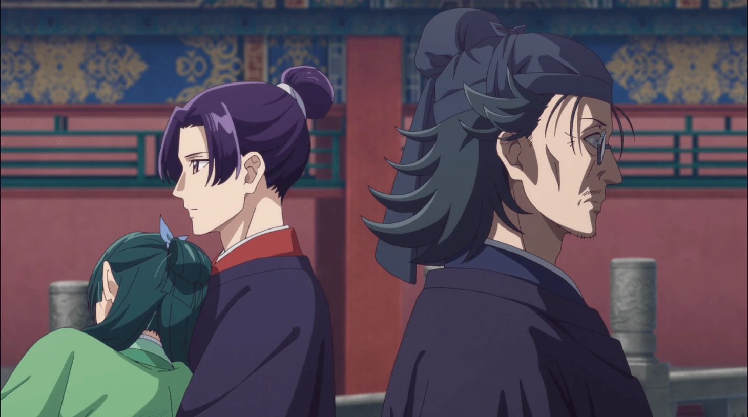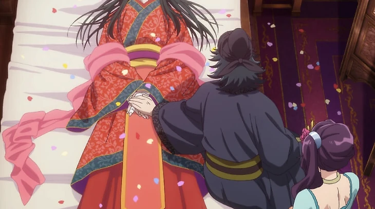 Повествование разделено на несколько сюжетных линий – Маомао и ее приемный отец (и ее настоящий отец), Маомао и девушки из борделя, Маомао и Женьши, Маомао и наложницы. Две из них идут фоном, ничего кардинально не меняется – Маомао по-прежнему любима всеми наложницами, и девушки из борделя обожают ее, как младшую сестренку. Рассмотрим две основных сюжетных линии.