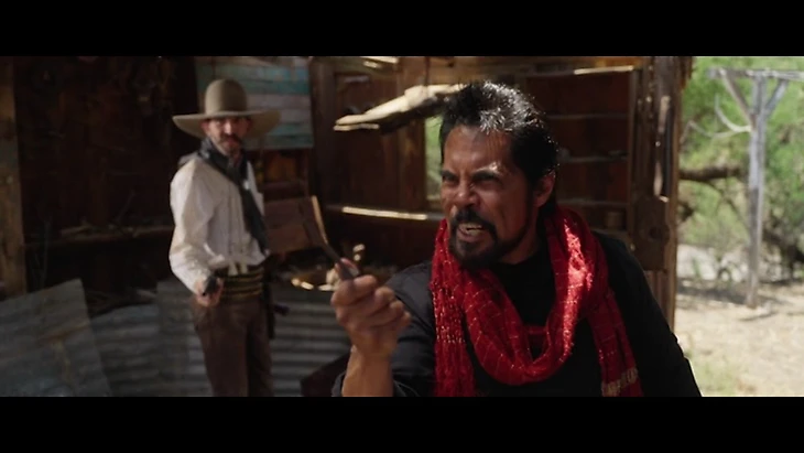 А вот эпизод из «Золота Рио Браво». Невский снова спасает Джо Корнета от мексиканцев. Вместо расстрела они дерутся с другом Шварценеггера на ножах. Чем все заканчивается? Сами знаете.