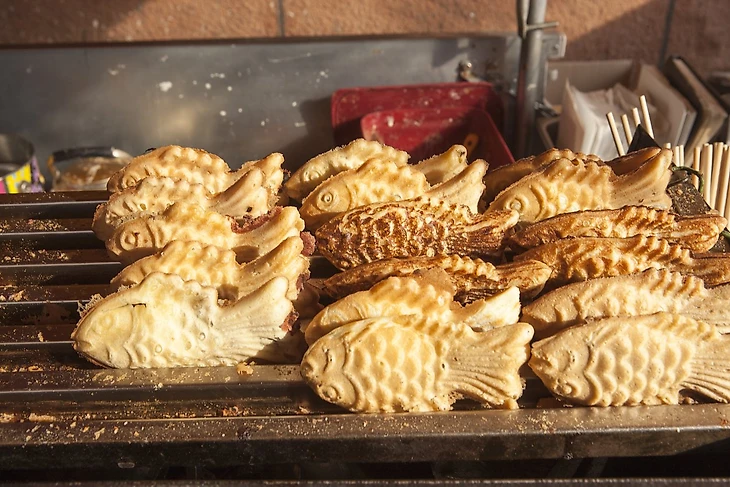 Пуноппан – вафля в форме рыбки с различными начинками. Ее история началась, когда Корея заимствовала форму и концепцию другого лакомства – японского тайяки. Отличие в том, что пуноппан обычно начиняют сладкой пастой из красной фасоли (пхат). В Японии начинкой рыбки служит анко – паста из фасоли адзуки. Впрочем, что тут, что там современные вариации включают и заварной крем, и шоколад, и более экзотические вкусы вроде сыра и мороженого.