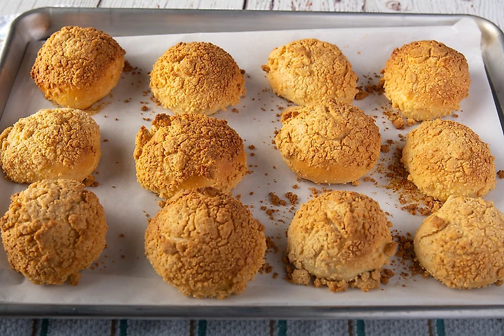 Соборо – мягкие сдобные булочки с хрустящей сладкой крошкой. Готовятся на основе молока, яиц и масла.