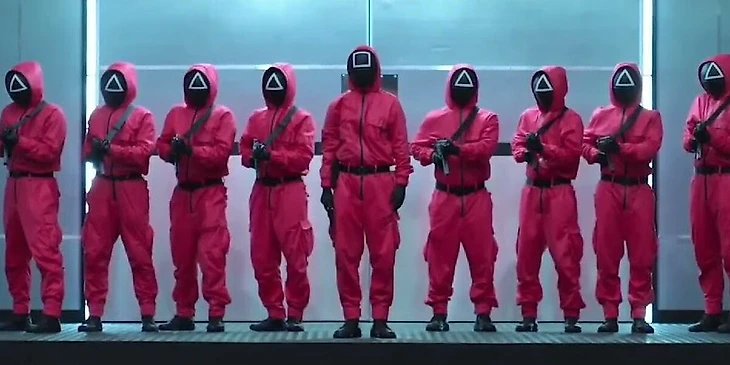 Далее стало появляться все больше подробностей. Их раскрыл режиссер «Игры в кальмара» Хван Дон Хек. По поводу розовой униформы охранников он сказал, что изначально планировал выбрать для сериала костюмы бойскаутов. Но быстро выяснилось, что они сильно подчеркивают фигуру каждого, когда задача стоит стереть индивидуальность. Так практикуется в тоталитарных обществах, где важна групповая идентичность – «мы все вместе», или «мы все заодно». К тому же общая форма это своеобразный знак отличия, принадлежность к какой-либо социальной группе. Иначе говоря, по словам режиссера, костюм не делал охранников «похожими на муравьев в муравейнике».