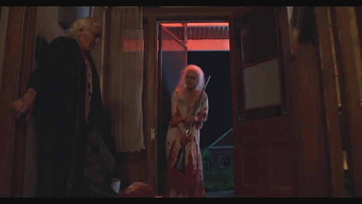 Финальная сцена, на мой взгляд, один из самых мощных моментов фильма. Если верить слухам, это импровизация Мии Гот. Пэрл, потеряв всех и все, что ей дорого, остается на ферме, натянуто улыбаясь сквозь слезы. Эта улыбка олицетворяет безумие внутри и отказ от реальности, а сама сцена идеально подводит нас к образу пожилой женщины в Х.