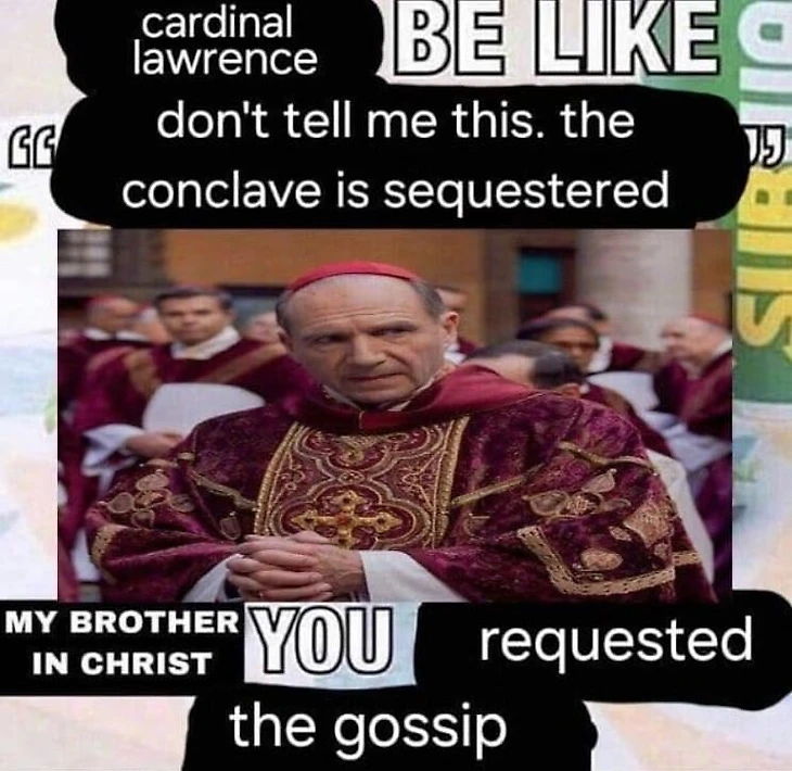 Перевод: Кардинал Лоуренс, когда ему что-то рассказывают: «Не говори мне этого. Конклав изолирован»
