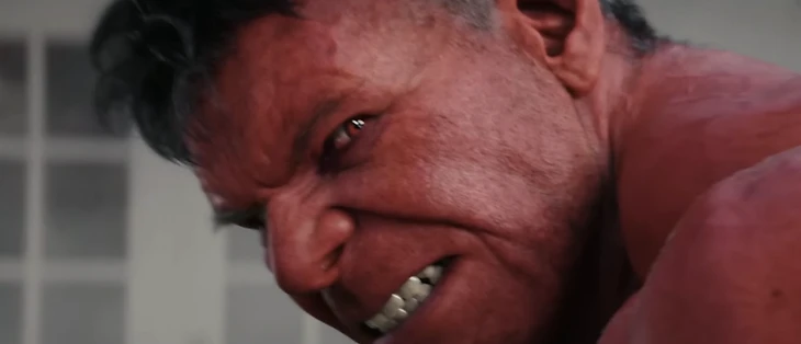 Превращение Росса в Красного Халка будто рождение машины для убийств. По канону такой яростный громила ушатал бы и Халка, и Таноса!
