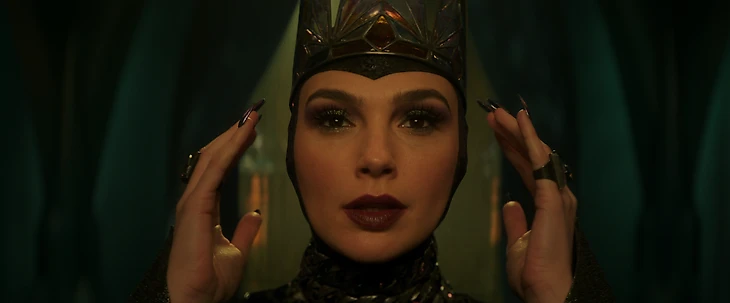 Галь Гадот одним взглядом очаровывает настолько, что вместе с королем и я сам был готов отдать ей все царство. Когда правитель уезжает, Гадот быстро раскрывает темную сторону и предстает в роковом образе – смотрится чарующе, но так холодно. Меня не покидало ощущение, что актриса не подходит на роль.