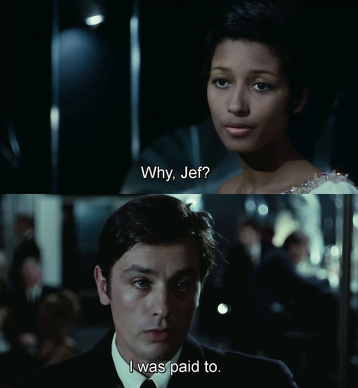 В общем-то, много мы таких фильмов видели. Но... Во-первых, это 1967 год, и тогда подобные сюжеты не были настолько типичными, выглядели явно свежее, чем сейчас. Во-вторых, в деле Жан-Пьер Мельвиль и Ален Делон – классики французского кино, а это залог качества. Снят фильм, безусловно, очень сильно и стильно. Прекрасный образчик нуара.