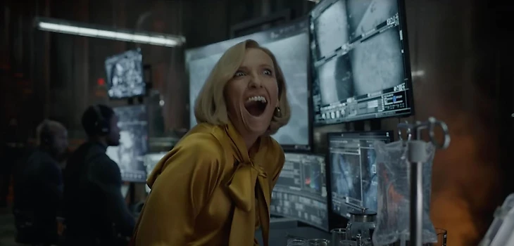Микки-17 передает сообщение Наше с помощью жеста, изображая букву «С» и цифру «3» – это отсылка к одной из их секс-поз, которую они называли «принеси ребенка». Наша захватывает Ильфу и требует выпустить ее с базы вместе с детенышем.