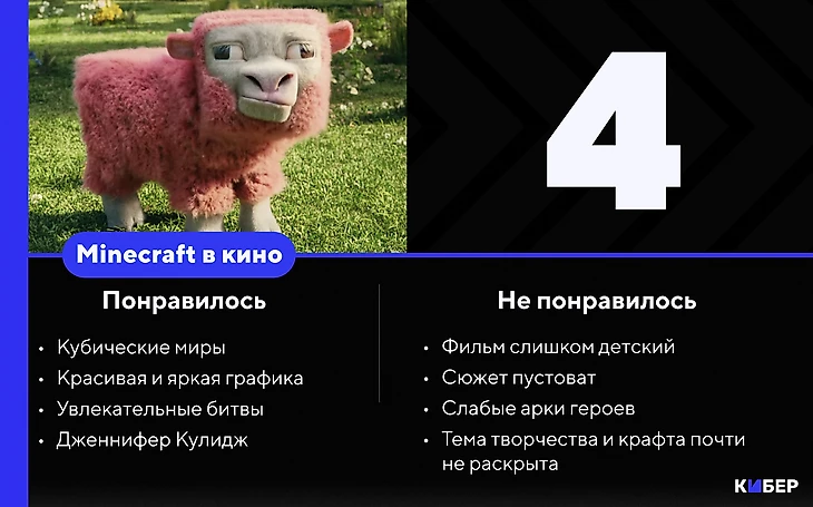 Создатели «Minecraft в кино» давят на теплые воспоминания геймеров, вытаскивают деньги из их карманов, но взамен выдают смысловую пустышку в яркой обертке.