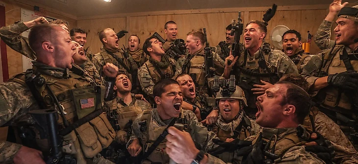 Главное, что нужно знать про «Под огнем» перед просмотром — это очень специфический, я бы даже сказал, уникальный антивоенный фильм. Он длится всего полтора часа и построен как репортаж из самого центра событий. Кажется, что зритель — еще один морпех в отряде, который проживает этот военный эпизод вместе с другими, находясь внутри того самого злополучного дома.