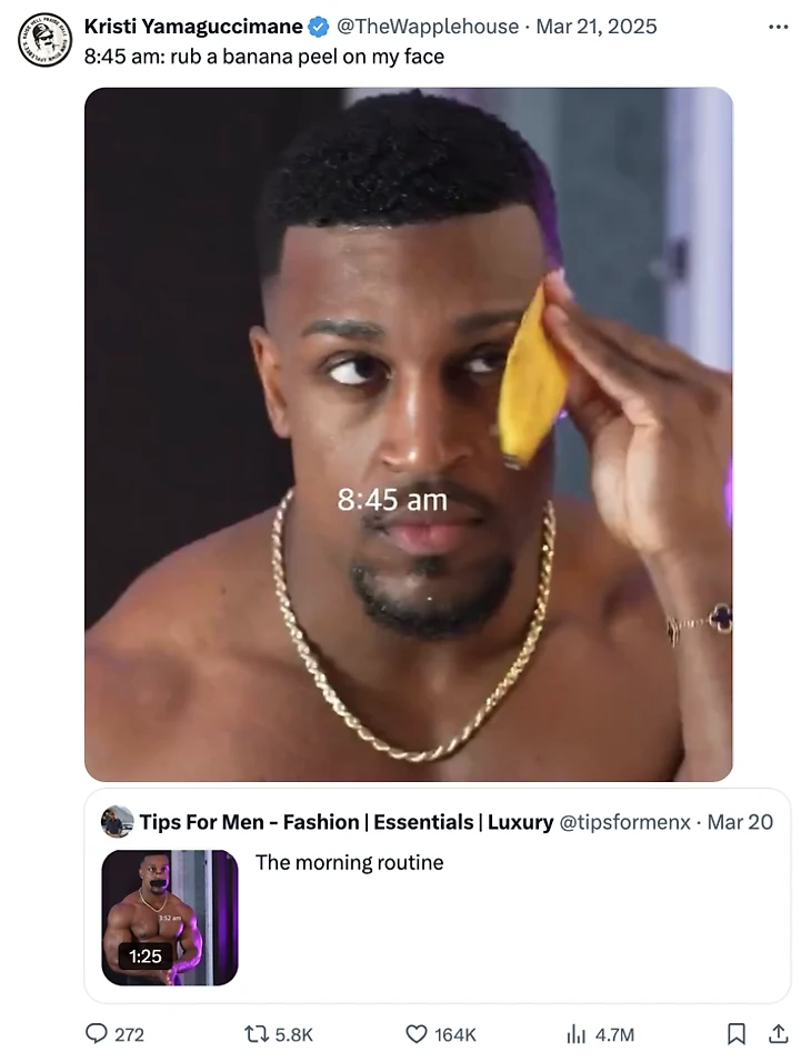 Подписчики начали пародировать Эштона, заклеивая рот, покупая «Саратогу» и обмазываясь банановой коркой.