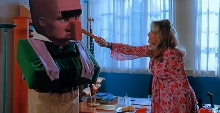 Сцена красиво завершает любовную историю Марлен (Дженнифер Кулидж) и ее нового кавалера – жителя деревни из Оверворлда. По сюжету ворчливый NPC с помощью волшебного портала случайно сбежал в реальный мир, где его сбила Марлен на машине. Чтобы избежать суда, женщина приютила бедолагу, а после даже пригласила на романтический ужин – они быстро влюбились друг в друга.
