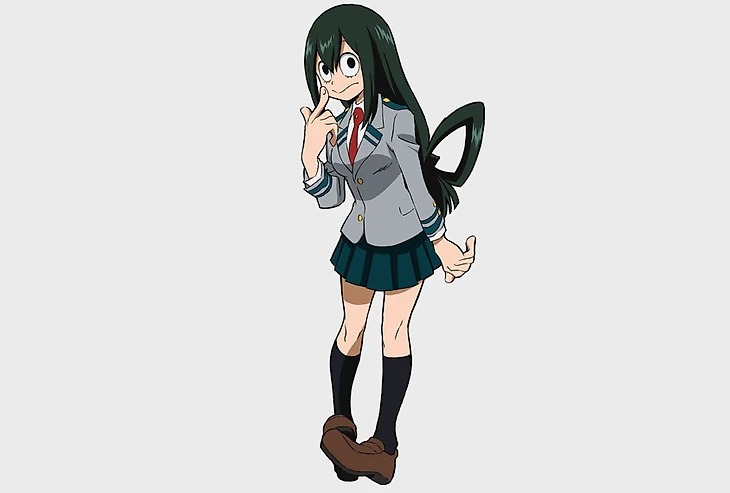 Цую Асуи, известная как Фроппи, – 16-ти летняя ученица класса 1-А академии Юэй ростом 150 см. Причуда, «Форма лягушки», наделяет ее множеством удивительных способностей, включая длинный и клейкий язык, который она использует для захвата предметов и маневрирования в бою. Цую прекрасно плавает, может прыгать на большие расстояния и с легкостью сливается с окружающей средой благодаря специально адаптированному костюму. Спокойная и рассудительная, она всегда сохраняет трезвый ум в бою и даже заметила сходство между причудами Всемогущего и Изуку Мидори. В свободное время Цую наслаждается дождем и желе, что подчеркивает уникальный и дружелюбный характер.