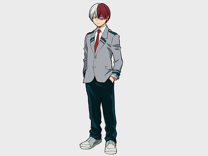 Шото Тодороки – 16-ти летний герой ростом 176 см и сын знаменитого Пламенного Героя: Старателя. Обладая Причудой «лёд-и-пламень», может одновременно манипулировать огнем и льдом, что позволяет замораживать противников, создавать ледяную броню и стену, а также использовать огненные атаки. Шото выделяется впечатляющим телосложением и гетерохромией – его левый глаз бирюзового цвета, а правый — серый, что придает особый вид. Он занимает 5 место в классе 1-A и продемонстрировал свои способности на спортивном фестивале, заняв 2 место после Кацуки Бакуги. Специальный костюм помогает оптимизировать использование обеих сторон Причуды в бою, делая его одним из самых многообещающих героев нового поколения.
