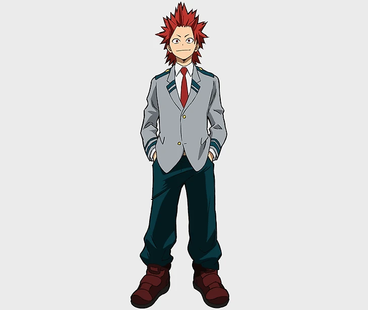 Эйджиро Киришима, известный как Мужественный герой: Красный Бунтарь, — 16-ти летний герой ростом 170 см, обладающий уникальной Причудой «Отвердение». Способность позволяет покрывать тело мощной броней, превращая его в неуязвимого монстра с острыми зубами и ногтями, а также твердыми волосами, которые могут выдержать серьезные удары. Эйджиро способен поддерживать форму всего 30–40 секунд, но за это время персонаж может нанести сокрушительный удар укрепленным кулаком, способным сбить с ног даже самых стойких противников. Имя символизирует силу и остроту, а сам герой обожает мясо и мужественные вещи, что делает его харизматичным и запоминающимся персонажем. Интересно, что изначально он не планировался как ученик 1-А, но завоевал любовь создателя манги, Кохэя Хорикоши.