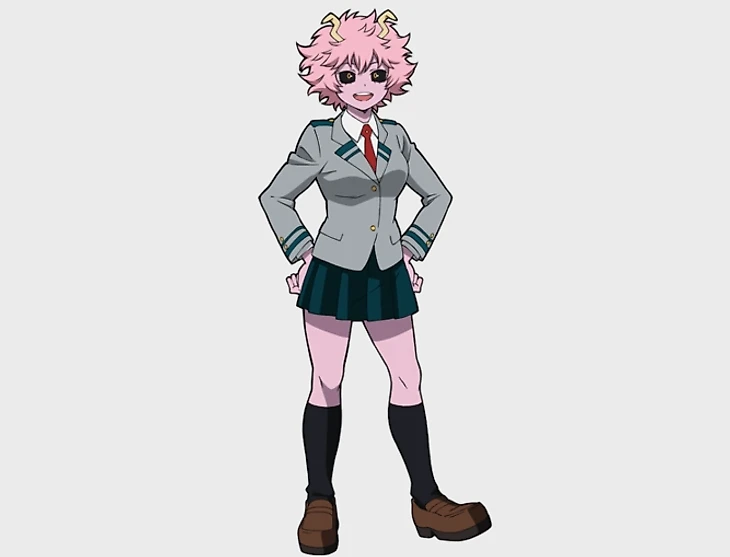 Мина Ашидо – яркая 16-ти летняя студентка ростом 159 см. Причуда «Кислота» позволяет создавать мощные кислотные стенки для защиты и обволакивать себя кислотой, что делает ее практически неуязвимой в бою. Мина известна усовершенствованными рефлексами, которые делают ее одной из самых быстрых учениц класса 1-А. Интересно, что первый кандзи в ее имени можно прочитать как «кислота», а первоначальная версия геройского имени, «Королева чужих», отсылает к культовому фильму Ридли Скотта. Мина обожает танцы и любит натто и окра, а ее знак зодиака – Лев.