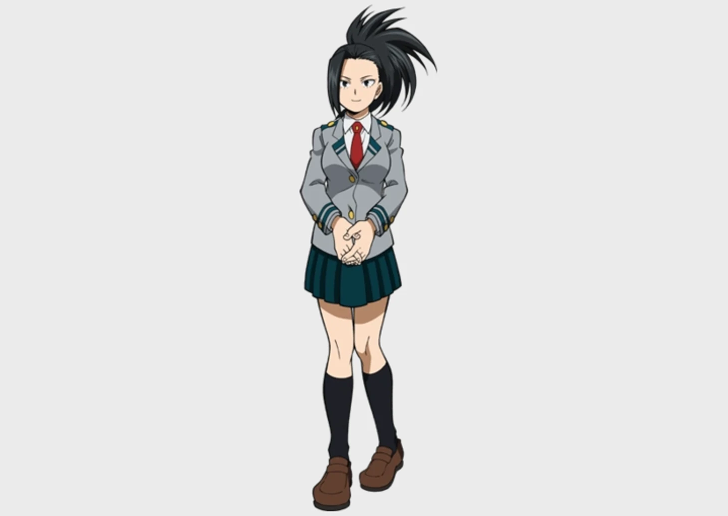 Момо Яойорозу – впечатляющая 16-летняя студентка академии Юэй, с выдающейся внешностью с длинными черными волосами, собранными в хвост, ростом 173 см. Она является вице-президентом класса Изуку Мидории и известна рассудительным характером и природными лидерскими качествами. Причуда, «Создание», позволяет материализовать любые объекты, кроме живых существ, что делает ее незаменимой в бою и в командной работе. Момо обладает проницательными темными глазами, отражающими решительность и самоотверженность, что делает ее одной из самых ярких и сильных учениц в классе.