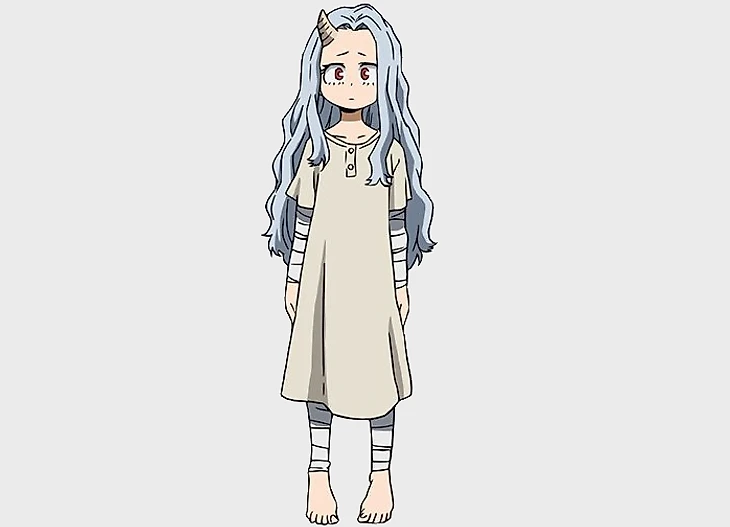 Эри – трогательный, 7-ми летний персонаж ростом 110 см. Причуда, «Перемотка», позволяет «отматывать» тело человека до любого момента в прошлом, что делает способностью невероятно мощной и опасной. Имя Эри, означающее «сломить разум». У нее светло-голубые волосы и красные глаза, что связывает ее с Томурой Шигараки в детстве. Важным моментом в персонажа развитии стало то, что в Финальной войне она пожертвовала частью своего рога, чтобы помочь спасти Деку. Эри обожает яблоки, что придает образу дополнительную милоту.
