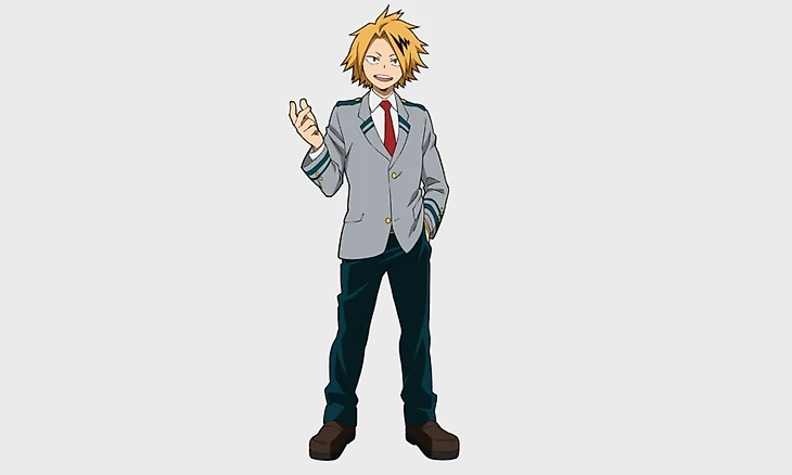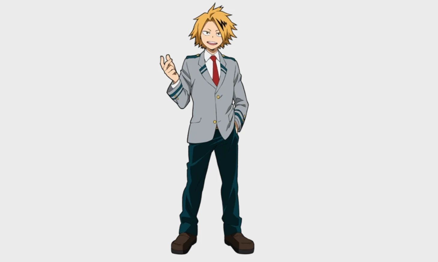 Денки Каминари – харизматичный 16-ти летний персонаж, ученик класса 1-А академии Юэй ростом 168 см. С Причудой «Электроразряд», также известной как «Герой-электрошокер», способен покрывать свое тело электричеством, что делает его мощным, но рискованным бойцом — превышение предела мощности может привести к короткому замыканию мозга. Несмотря на способности, Денки проявляет заботу о товарищах и старается избегать использования силы рядом с ними, опасаясь причинить вред. За пределами боевых действий он обожает гамбургеры и следит за модными трендами, носит шрам на лбу, полученный во время Войны за освобождение от паранормальных явлений.