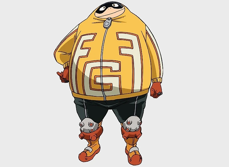 Тайширо Тойомицу, известный как Жирножвач, – уникальный 37-ми летний персонаж, обладающий внушительным ростом в 250 см. Причуда «Жировое поглощение» позволяет захватывать объекты и людей, превращая его в мощное орудие в бою. Тайширо не только обладает повышенной силой и прочностью, позволяющей выдерживать атаки, но и впечатляет скоростью и острым интеллектом, что делает его универсальным бойцом. Интересно, что форма героя напоминает матрешку, а он сам обожает такояки.