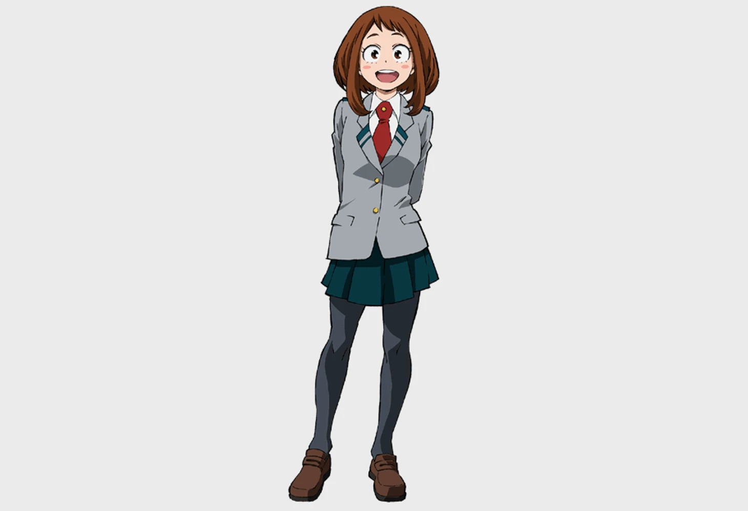 Очако Урарака – харизматичная 24-х летняя ученица класса 1-A в академии Юэй ростом 156 см. Причуда «Нулевая гравитация» позволяет сводить на нет воздействие гравитации на объекты, касаясь их подушечками пальцев, что делает их невесомыми и способными парить в воздухе. Она может отменить эффект способности, соприкасаясь пальцами друг с другом. Очако славится добротой и страстью к японской кухне, особенно к моти, а также любовью к звездному небу. В процессе обучения проходит серьезную боевую подготовку, включая рукопашный бой. Интересно, что ее имя переводится как «яркая, красивая», что отражает светлый характер.