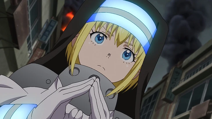Айрис (Ирис) одна из двух выживших монахинь храма Святого Солнца. В пожарной охране работает медсестрой и не обладает какими-то иными способностями. Тверда в своей вере, погибающим инферналам чистает молитвы, чтобы облегчить их страдания. По характеру Айрис заботливый и добросердечный человек, желающий помогать и оказывать поддержку всем нуждающимся, несмотря на обстоятельства. Однажды доказала, что является храброй девушкой, вступив в схватку с инферналом. Порой бывает наивна и легкомысленна. Застенчива, но при этом остроумна, когда позволяет себе шутить над другими членами Восьмой бригады.