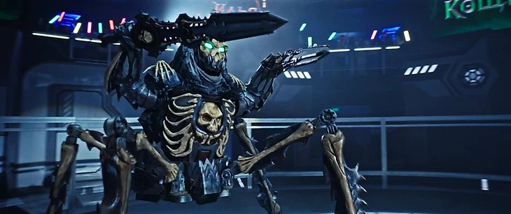 В кадре есть и обычные роботы. Жар-птица с огненными крыльями, Лихо Одноглазое с огромным топором, Кощей в паукоподобном образе. Все они сходятся в бою, изобретательно выглядят, отсекают друг другу конечности. Смотреть на такое дико интересно!