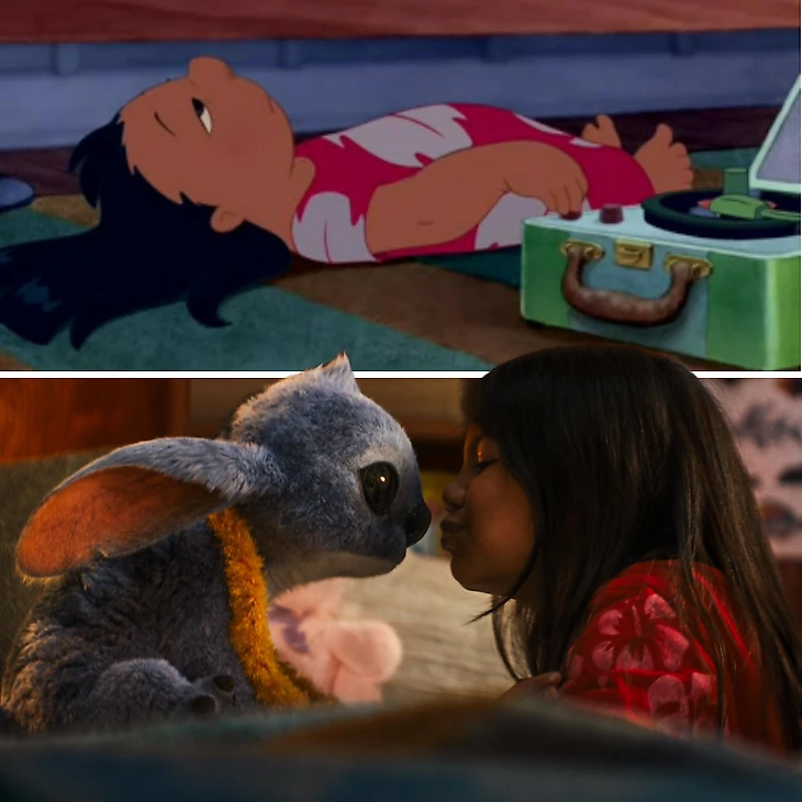 Упростили сцены, где Лило делает Стича лучше. В мультфильме она пытается раскрыть в нем добро – учит его не разрушать, а создавать. Поэтому ставит ему в пример Элвиса Пресли: учит питомца элегантно двигаться, эффектно петь и играть на укулеле. В ремейке обошлось без творчества – лишь сдерживание эмоций.