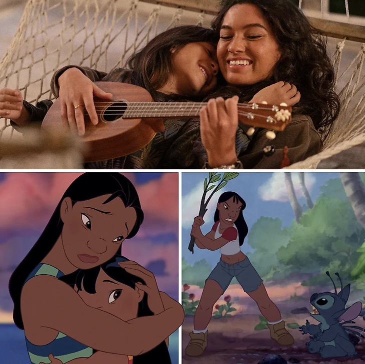 В фильме сгладили углы и обрубили эмоциональную связь: девочка приходит в приют одна и покупает Стича за горсть камешков и фантиков. Эмоционально пустовато. При этом Нани в ужасе от того, что сестренка притащила Стича в дом. Совсем другая окраска отношений.