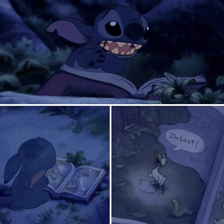 История лишена книги про утенка – крошечной, но важной детали душевного состояния Стича. В оригинале Лило знакомит друга со сказкой, а после очередной выходки Стич уходит в лес в обнимку с книгой. Он видит в одиноком утенке себя, после чего у Стича ломается установка на разрушение: он начинает ценить семью и понимает, что Лило – это его «охана» (семья).