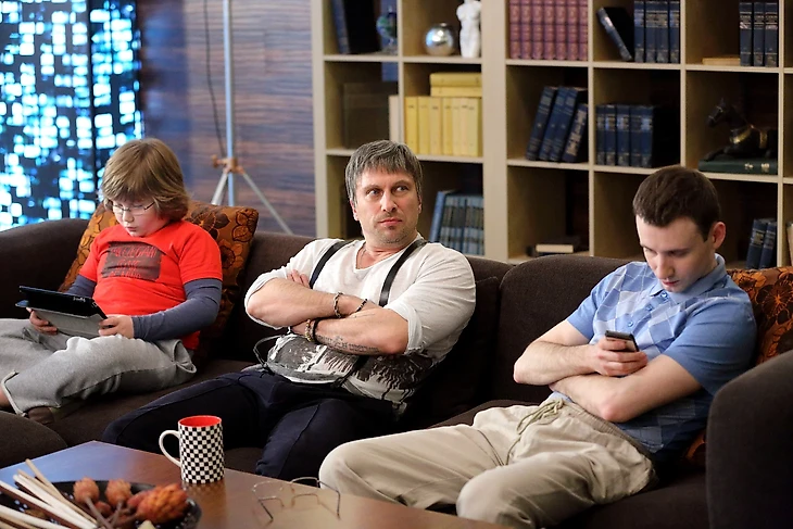«Два отца и два сына» (2013–2016) – российский ситком, выходивший на канале СТС. Главную роль исполнил Дмитрий Нагиев, сыгравший успешного актера Павла Гурова, звезду популярного сериала «Майор Лавров». Сюжет сосредоточен на неожиданном возвращении в его жизнь сына Виктора, которого он оставил 20 лет назад, и внука Влада, с которыми он вынужден начать совместное проживание. Сериал состоит из трех сезонов и 60 серий, выходивших с 2013 по 2016 год.