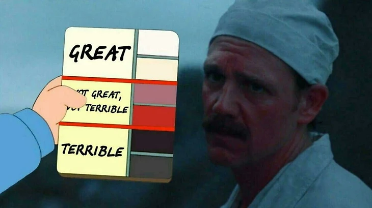 Я кстати в плане тонкости иподачи подтекста, ситуации, взаимоотношений между персонажами «Чернобыль» же был тоже дико хорош. Там конечно были немного явно клюквенные и в лоб моменты — особенно в плане того, как показывали партработников и в целом госмашину. Но мне кажется их если ты в не контекста оч сложно правильно передать, где-то все равно ошибешься.