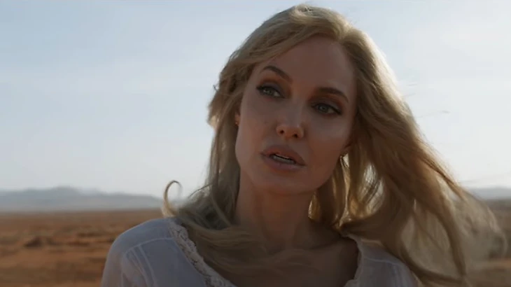 Анджелина Джоли присоединилась к актерскому составу в 2019 году и поначалу должна была сыграть роль Серси, но через год разработчики объявили, что она сыграет Тену. Во время съемок актеров подстерегали опасности. На Канарских островах было обнаружено взрывчатое устройство времен Второй мировой войны. Пришлось всех эвакуировать, включая Джоли. В целом фильм получил противоречивые отзывы у фанатов Киновселенной, хотя работа Анджелины Джоли в большинстве рецензий была воспринята положительно.